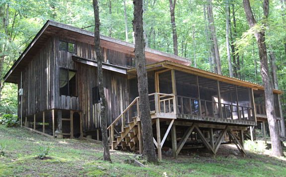 Close to the Appalachian Trail in Cartoogechaye in Franklin NC, on 3.37+/- acres sits this cute, rustic cabin in the woods. The steep vaulted ceilings give it an airiness & the tongue & groove wood throughout the two bedroom & two bath hide-a-way give it a cozy, warm feel. The master bedroom is large enough to accomodate a sitting area & has two large walk in closets.There is another room that is currently used as a bedroom and the sleeper sofa conveys so you can accomodate eight friends & family comfortably. This cabin lives so much bigger than the square footage!You can spend all day on the two screened in porches listening to the wind & birds in the trees as well as the bubbling stream. It is cool at this higher elevation so in the evening a fire in the fire pit provides great family time. There are seasonal views & with some tree cutting could be year round. New roof & well with easy access & plenty of parking just 15 mins. from Franklin NC. Owner is installing a gas log fireplace...