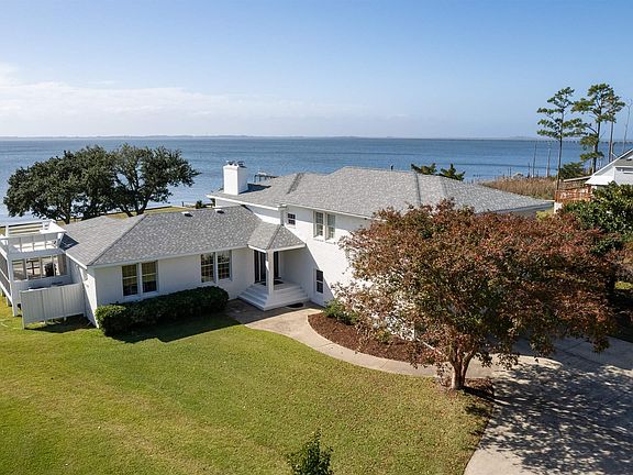 This property is one of those properties that truly do not come on the market often. A gorgeous soundfront estate tucked away on the North End of Roanoke Island. The home has been well maintained and updated through the years. At first glance you will notice the large parcel of land the home sits on. A parcel that could be subdivided to add a guest house or second home. The expansive views of the Croatan sound will take your breath away. Walking into the front door the hardwood floors grasp your attention and pull you into the bright living area with panoramic sound views. The massive kitchen provides tons of storage in the cabinets, beautiful quartz countertops compliment the ceramic tile floors. The sunroom with kitchen booths are perfect for having breakfast or a quick lunch while watching the dolphins play in the sound. A formal dining room is the picturesque place to host friends and family for supper. After supper move to the boundless porch area to enjoy a drink and watch the sunset, before moving back into the spacious living area featuring built-ins and plenty of space to spread out around the fireplace. When it is time to retire for the night the Master bedroom is one of the largest on the island. This master retreat has two walk-in closets and a NEW beautifully equipped ensuite bathroom. The three guest rooms also offer plenty of space as kid's rooms, and office, or for family to come to visit. The 900 sq ft two car garage has plenty of space to house two vehicles, as well as plenty of extra space for storage without being cramped for space. Just pass garage you will find the approximate 900 squ ft bonus space which offers three rooms that could be perfect as a separate apartment for airbnb, mother-in-law suite, or convert to your own home office. This property is one of a kind and the location is yet another plus. Just around the corner from the NC Aquarium, less than a 5 minute drive to all three schools, the Lost Colony, and the Gardens. 10 Minutes to the Ocean! It has it ALL! Updates include new roof in 2018, in 2022 - complete master bathroom remodel, screened in porch, sheetrock throughout living area, exterior & interior paint, new front door, decking, in 2007 septic replaced. The home had the new addition added in 1998 to add an extensive amount of space. There are several measurements from appraisals and the county tax site that states that the home is larger.