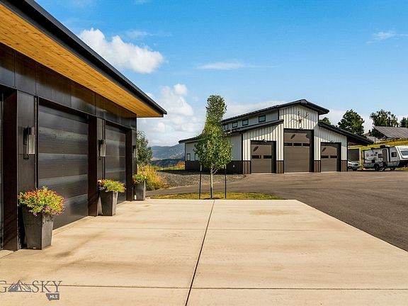 surrounding mountain ranges, honoring Montana’s natural beauty and captivating sunsets. The property offers an exquisitely finished 5,067 square foot, 4 bedroom, 3 ½ bath, 3 car heated garage residence with a 2,000 square foot heated shop bringing the absolute benchmark in thoughtful and functional design and the property sells furnished and turnkey. Design Build details include concrete and steel framing, floor-to-ceiling Kolby Vistalux windows and doors, a 15 kilowatt grid-tied solar system, app-controlled automated Vantage lighting and shade system to control all lighting and shades, air conditioning and radiant in-floor heating throughout, an on-demand boiler system, gas fireplace and cozy Blaze King wood stove, infrared 4-person sauna, and washers/dryers on both floors. The heated garage is wired for electric car charging while the 2,000 square foot steel heated shop offers a hydraulic car lift, a gear room, mezzanine style storage, and space for all of your outdoor toys. This awe-inspiring custom-curated property provides a truly one-of-a-kind experience with no detail in design left unattended. You’ll love the industrial metalwork accents including an open staircase, the expansive covered main level patio with fireplace, grilling area, and adjacent wrap-around deck, Thermador appliances with commercial style drop range hood ventilation, quartzite countertops, butler’s pantry, custom tiling, and phenomenal landscaping. This home is a truly exemplary oasis located in one of Bozeman’s most desired locations. Call today for a private showing.