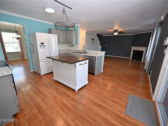 Less than 10 minutes to the Virginia Line!!! Easy Commute to Virginia and USCG Base in EC. This beautiful 4 bedroom and 2.5 bath home offers you an acre of pure country living with NEW Above Ground Pool and NEW Vinyl fence!! Home has spacious dining room, living room with fireplace, open kitchen layout with eat on bar, flex room/office and 1/2 bath. The upstairs features large primary bedroom with walk in closet and 3 additional bedrooms, laundry area. Exterior features include screen porch, front porch, double attached garage, storage building ALL OF THIS at the end of a cul-de- sac! NC Lic #307443