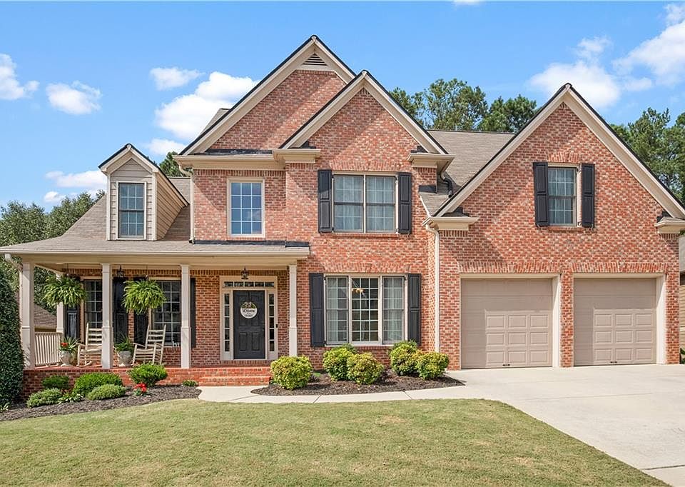 Talk about curb appeal! The rocking chair front porch welcomes you to this stately brick-front beauty on one of the largest Seven Hills lots, including a level driveway and a private backyard. The dramatic entry foyer is flanked by a private home office with vaulted ceiling on the left, and a separate dining room with picture molding and tray ceiling on the right. The hardwood floor entryway opens to the light-filled, two-story family room with gas fireplace. The spotless stainless/granite kitchen provides easy access to the recently-refreshed covered deck, a relaxing spot for morning coffee or casual dining with friends and family. Don't miss the main-level bedroom with full bathroom and walk-in closet, a conveniently located retreat for guests and in-laws. The upper level features a generous primary suite with tray ceiling, walk-in closet, and vaulted ceramic tile bathroom with double vanity, soaking tub with picture window, and a separate shower. Two secondary bedrooms sharing a Jack-and-Jill full bathroom complete the upper level. There is plenty of room to expand living space to your preference in the full unfinished basement, which is stubbed for a full bathroom and also studded with electrical in place. There is basement access from the main level, as well as from the exterior rear door just off the second covered deck. This immaculate home has newer air conditioners and water heater, and the roof is just four years old! HSA One-Year Buyer's Home Warranty is included with sale. Seize the opportunity to begin your next chapter enjoying the resort-style living offered in Seven Hills, where every day is like a vacation! There is never a dull moment with the thirteen-acre water/recreation park and clubhouse, oversized pool with huge waterslide, zero-entry kiddie pool with splash pad, ten lighted tennis courts, three pickleball courts, two basketball courts, volleyball court, dog park, golf cart and walking paths, as well as walking trails that connect with Pumpkinvine Creek Nature Park, a 110-acre preserve. Welcome home to this exceptional community in the North Paulding High School district with convenient access to I-75.