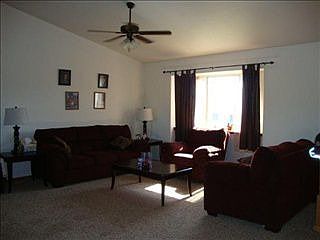 Spacious open floor plan with large entry foyer, vaulted ceilings, double sinks in main floor bath, bright kitchen with nice cabinets, island and all stainless steel appliances. Outside features include deck with stairs leading down to patio, 2 car garage and slab for extra boat or vehicle parking. Home is completely finished. A definite must see.