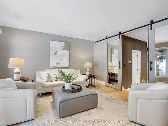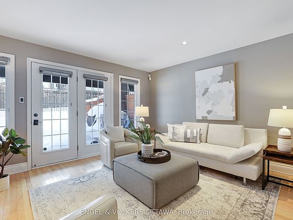 A classic red brick end unit row by Domicle is now available in the "Main Street Village". Featuring 9 foot + ceilings, hardwood floors architectural elements for interest and well scaled rooms for both downtime and entertaining this is a find in a neighbourhood anchored by a beautiful park with easy access to the river if you feel like a paddle & just steps from your door. A covered main entry offers protection from outside elements with a spacious foyer and closet. This level offers an inviting family room or guest space boasting a gas fireplace and offers a private access into the charming enclosed garden; a welcome seasonal oasis with fountain and hardscaping surround. Inside the staircase is a beautiful element throughout with a gentle sweep and detailed fine wood railings and pickets .The second level is designed for the primary entertaining space with a generously scaled peninsula kitchen with breakfast area that overlooks the streetscape through large window openings and is complete with a small balcony, ideal for BBQing year round with direct gas outlet. Scaled to offer good counter and prep surface the kitchen boasts a pantry and dedicated coffee station.The formal dining area is open and spacious and naturally flows into the formal living space flooded with natural light through large south facing glass and a fireplace that combined work well together to create an intimate space for conversation and relaxation.The bedrooms are separate and away with a primary that boasts a soaring vaulted ceiling ,"his" and "hers" walk- in closets and a separate lounge area along with a 3 piece ensuite with heated floors. The top level is a space dedicated for what your heart may long for; a yoga studio, a mediation space, library or private office with access onto a south facing roof top balcony.This handsome well executed home offers an unbeatable location with easy access to all the nation's capital has to offer.