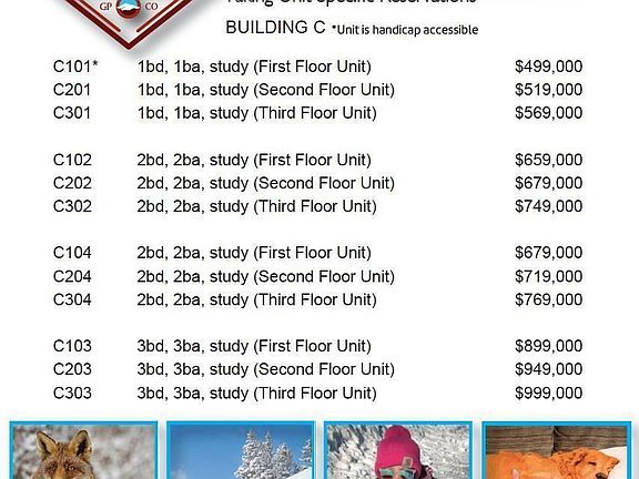 Reserve your Elk Creek Condo today! This is a two bedroom, two bath, plus study third level unit. Optional garage spaces available for $60,000. These condos are on the bus route and offer convenient location to town and recreation. CALL FOR UNIT AVAILABILITY!