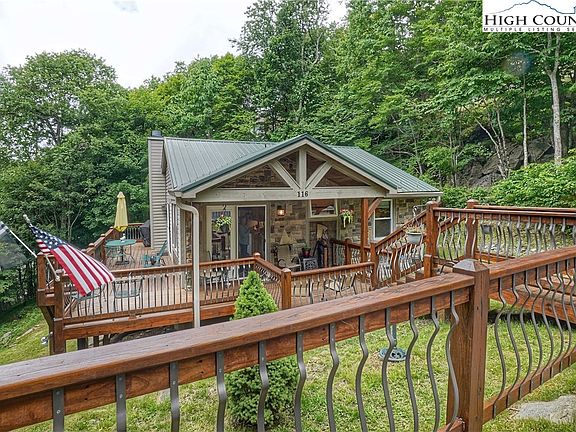 RARE 1.23 ACRES on BEECH MOUNTAIN - PARADISE FOUND - ONE OF A KIND property! "Beech VIEW Cottage" has it ALL and is uniquely nestled on gentle sloping 1.23 ACRES, offers spectacular long range WESTERLY VIEWS and sounds of a nearby rushing CREEK! Don't miss this opportunity to own this amazing new offering which will NOT last long! There is NO other home on the mountain that compares to "Beech VIEW Cottage" which is located in the desirable N Pinnacle Ridge/Cliffs area offering tons of privacy & some of the best views on the mountain. Enjoy spending your days listening to the sounds of a RUSHING CREEK while relaxing in the HOT TUB or sitting by the fire pit area. "Beech View Cottage" is all ONE LEVEL LIVING & has 2 BEDROOMS & 2 FULL BATHS sleeping 6 guests comfortably. The OPEN floor plan flows into the family room which has wood accent beams, wood floors, a wood burning stone fireplace & a new queen size sofa sleeper. The kitchen offers abundant cabinetry, under cabinet lighting, granite counters & new stainless appliances. Add'l upgrades include security system/cameras, LVP flooring in main living area & bedrooms, mini split A/C & HEAT, Smart tv's and rustic furnishings. The primary bedroom suite is furnished with a king size bed (new mattress & bedding), new barn door & the bathroom features the laundry area, heated tile floors & walk in shower. The 2nd bedroom is nicely appointed w/ a king size bed (new mattress & bedding) & there is a full bath for guests w/ walk in shower. There is an area above the main floor which can be converted into a loft bedroom w/ pull down staircase. The driveway is paved and also included is a storage shed ideal for ski & snowboard equipment & mountain bikes! The crawlspace is encapsulated w/ commercial grade dehumidifier plus a radon mitigation system. Cottage is being SOLD FULLY FURNISHED & is Beech Mountain Club eligible. Just a short 5 minute drive to SKI BEECH Ski Resort and 8 minutes to all the Town of Beech amenities.