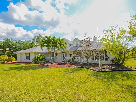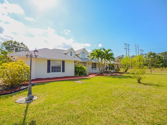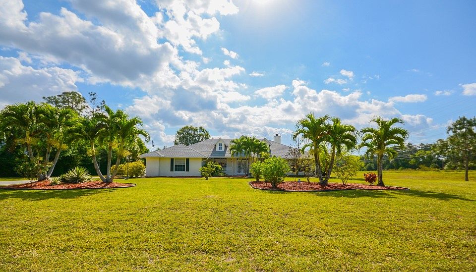 A BEAUTIFUL 3 Bedroom, 2 Bathroom, PLUS Bonus Room & Office, POOL Home in Wellington! This home is situated on 1 acre with a great back yard. The exterior has been updated with a new paint job, and is surrounded in lovely luscious green landscaping with a paved walkway right up to the front door. Upon entering into the interior of the home, you will notice that this home is designed with an Open Concept, Split floorplan, featuring 2500 square feet of living, and has been updated with a fresh coat of interior paint and laminate floors throughout. The Living Room is HUGE, featuring a stone fireplace, a great view of the Patio, and is open to the Dining area and Kitchen. The Kitchen features a large cabinetry system, perfect for storing all of the Kitchen essentials. The Master Bedroom