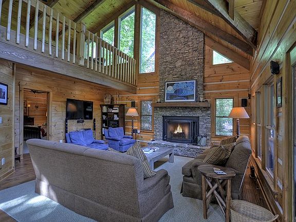 If you are looking for an incredible relaxing place to call home this is for you. Sit in either of the screened porches that overlook the lake from both levels of this home and let your worries melt away ! With extra room for entertaining and dining as well, this spacious Cabin has 4 bedrooms each having their own bathroom and 1/2 bath guest bathroom is a great feature for large family or your guest visiting. This home is immaculately maintained and tastefully decorated. Most of the furnishings and decorative items would be negotiable. Deep water boat dock with lift and a large deck at the waters edge. Perfect cabin at the Lake!