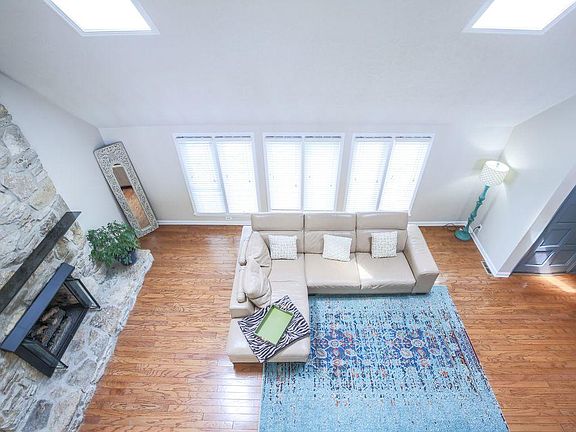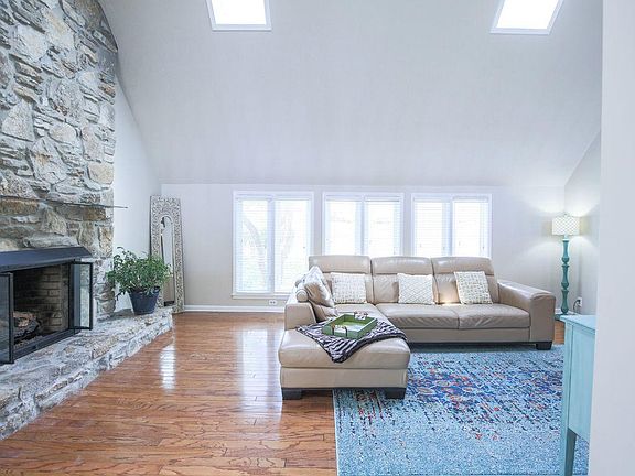 Beautifully updated and situated on a fabulous large private lot w/ irrigation syst & storage barn. There are volume ceilings, skylights and lots of windows for plenty of natural light. The master suite is great and has remodeled bath w/oversized shower, and dbl vanities. Finished basement has room for whatever you want to make it and includes a wood burning stone fireplace. The unfinished area is perfect for storage & storm shelter! This one won't last long!