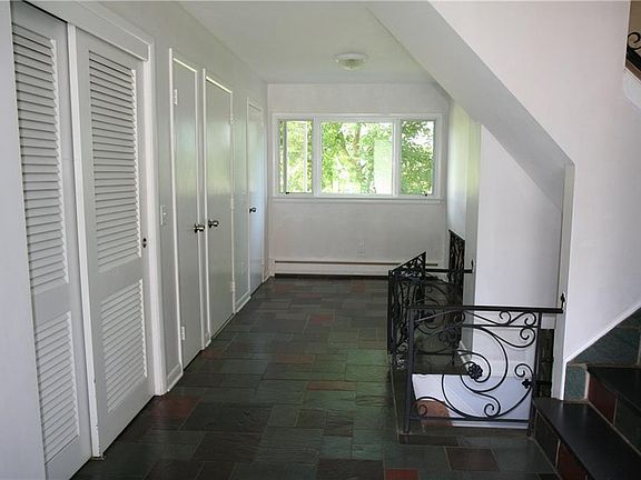 Walk into a spacious foyer with slate flooring. Continue down 1 level to a second living room with fireplace and kitchen/wet bar,and 3 season room. Continue 1 level up into the dining/living room and eat in kitchen with a deck off the dining area.2 levels up you enter into the sleeping area with 4 spacious bedrooms and 1 full bath. The lowest level houses the basement. Square footage as per owner is 2160sq ft.-buyer to verify. Refrigerator and oven are non working in the wet/bar area. Gas stovetop works.