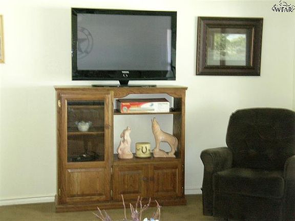 Lake home, move in ready. Enjoy waterfront home offering 1376 s.f. of living space, 3 bdrms, 1 full bath, 2 car carport, 3rd bedroom would make nice office, lrg laundry. Rm, kitchen w/bkfst bar & dining w/new qtz. counter tops, tumbled marble backsplash & new stainless appliances. Lrg dining open to kitchen. Living rm. w/lake view. CH/A. 15 x 20 covered patio w/view of lake & 2nd covered patio w/hot tub. 2 fenced yrds. 2 storage bldgs, wrkshop, metal pier, cvrd. dock, 7 floating dock. Home comes furnished.