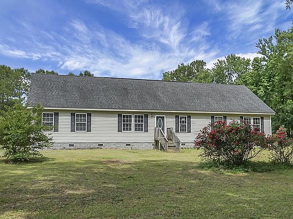 Welcome to Bonneau!! This modular home is almost 2300 sf!! Just over 1 acre of land; this 4 bedroom and 2 bath home features an upstairs walk up full attic for storage!! We enter the home through the back door. Sliding doors lead into the dining room and kitchen!! Huge Den that has a wet bar and fireplace for lots of entertainment!! The primary bedroom is located on the opposite side of the house with a huge en-suite bathroom that features a separate tub and shower and another fire place for added ambience. This home is in need of new floors, paint, and other minor fixes. All 4 sets of steps need to be replaced. Home is being sold as is. I have a quote for new flooring, paint, and replacing steps. They will be uploaded in the document section.