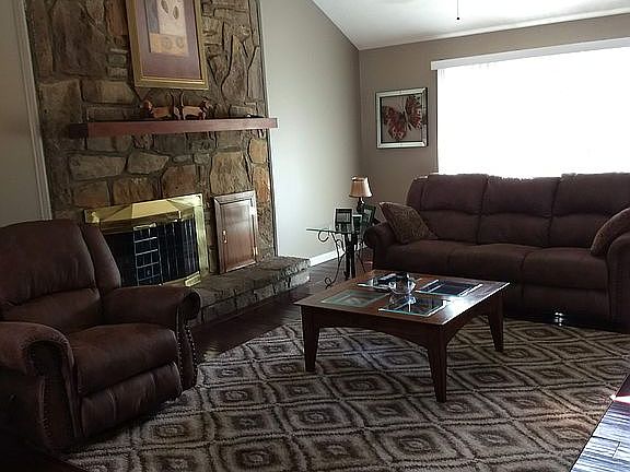 Gorgeous 3 bedroom 3 1/2 bath contemporary home in Oakmont Estates. Living room with cathedral ceiling and beautiful stone wood burning fireplace. Dining room has free standing fireplace with gas logs. Large eat-in kitchen with plenty of cabinetry and another free standing fireplace with gas logs. Master bedroom has 2 en suite bathrooms and a walk-in closet. The other two bedrooms and bonus room share the hall bath. In-ground pool for your enjoyment. Trampoline and playhouse add to the fun. Three car attached garage and single detached garage. New granite counter tops in kitchen, new windows, stone bond on patio at pool, pool house remodeled, new ceilings fans and paint