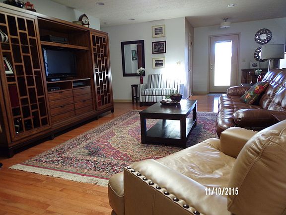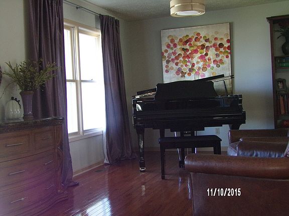 Open floor plan. Additional room could be a 4th bedroom or office or large mudroom/laundry room. Ventless gas log in fireplace. Skylight with powered awning. Sunroom with heated tile floor. All oak wood floors except in bathrooms/sunroom. No carpet. Updated kitchen with dark cherry cabinets, granite countertops and s/s appliances. Also has a kitchen island that matches cabinets with granite top that stays with home but is not depicted in the kitchen photographs. Inground swimming pool (concrete, no liner) with diving board. New landscaping rock and additional landscaping recently added. Extra parking pad beside the extra deep two garage that can park a large RV or extra cars. Outbuilding in back included. Many more updates. Can show almost anytime.