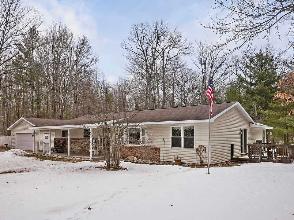 Nesteled at the end of a cul-de-sac you'll find this beautifully maintained home sitting on about an acre, surrounded by state land and woods all around. The 1800 square foot home boasts 4 generous sized bedrooms with 2 full baths and a very open and airy living space with a formal dining room and large kitchen. The home has a split floor plan making it a great option for a little privacy. Outside you'll find a quaint covered front porch, perfect for some morning coffee, a good book, off the dining room there's a doorwall to a secluded deck for evening BBQs. Out back there's a large shed that has water hooked up to it and electricity. The shed is currently set up for a dog groomer but could easily be converted to a she shed or man cave with a wet bar! A property that offers this much is hard to find and sure not to last long! Call today for your private tour.