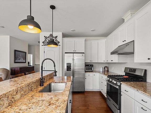 You'll love the bright open layout of this 3-bedroom, 3-bath home in sought-after Hillside at O'Brien Farm. Enjoy 9' ceilings, gorgeous, engineered hardwood floors, and a spacious kitchen with white cabinets, pantry closet, granite counters, stainless appliances, and a large island that opens to the fire-lit living and dining areas. A versatile flex space off the dining area is perfect for an office or den. The front of the home features two bedrooms, including a serene primary suite with 3/4 bath, walk-in shower, dual vanity, and large closet. A laundry room, and full guest bath complete the main level. Downstairs offers a third bedroom with full bath, large rec room, utility/storage space, and access to a finished two-car garage. Head outside to relax on the deck or patio and enjoy the fenced-in yard with a shed. Extras include a hot tub outlet by the patio and a generator outlet in the garage. Located in an inviting neighborhood in an ideal location near shops, restaurants, the airport, schools, and paths. Move right in and enjoy!