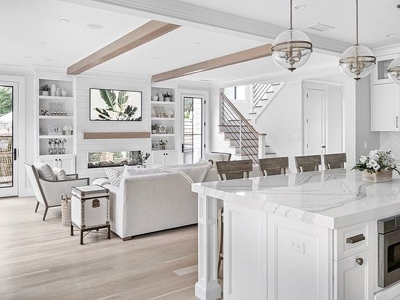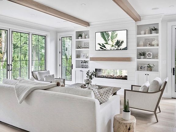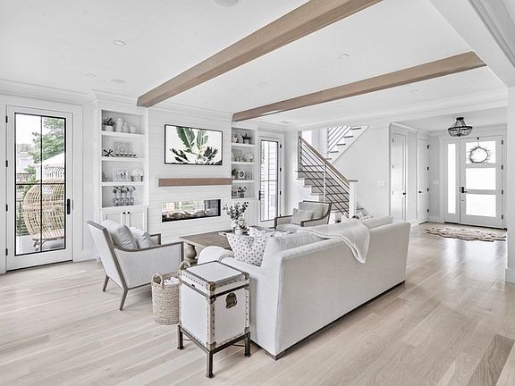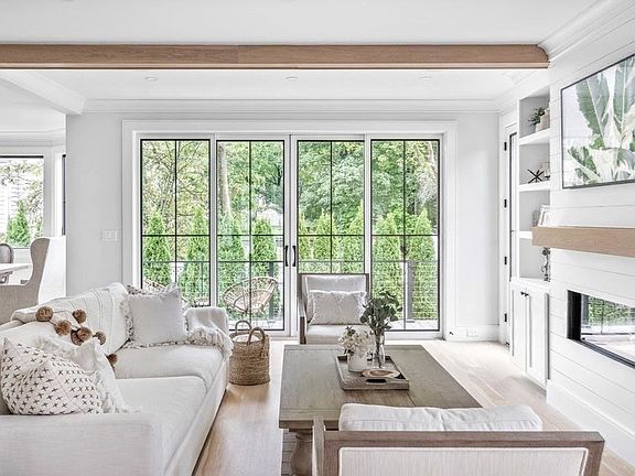 Exceptional custom-built residence blending timeless design with modern comfort. Bright and airy, this home boasts soaring ceilings and large windows throughout. The main level has a chef’s kitchen with an oversized island, walk-in pantry, an office, and premium appliances, seamlessly connecting to a dining area with a stylish wet bar. The living room centers around an indoor-outdoor fireplace and flows to a spacious deck and bluestone patio. Upstairs, the primary suite impresses with dramatic cathedral ceilings, its own fireplace, and a private balcony. The spa-inspired bath features a steam shower, soaking tub, heated floors, and skylights. The third floor offers a generous family room & half bath, perfect for work or play. Outdoors includes a front porch with an idylic swing, wrap-around deck with Marquis Spa 6-person hot tub, and beautifully landscaped grounds. This thoughtfully designed home offers luxury living in one of Newton's premiere neighborhoods and local conveniences.
