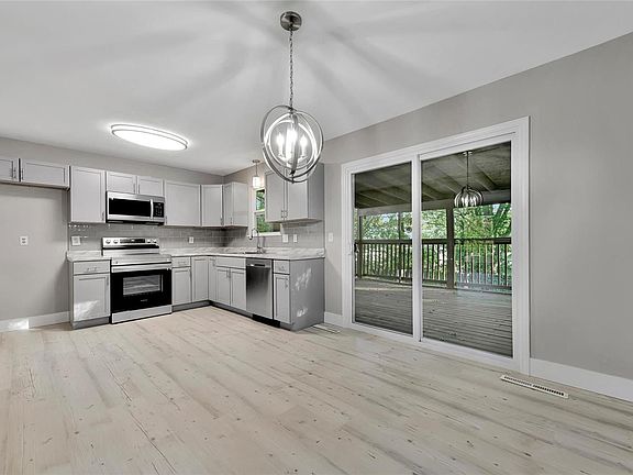 Professionally Upgraded/updated 3 bed, 2.5 bath open and spacious home in Wolf Branch School District w/ walk out finished LL. New designer lighting/plumbing fixtures, & countless updates / upgrades throughout. Fully renovated open dream kitchen with stylish custom cabinets, custom backsplash, stainless appliances, and new countertops. First Class & totally Gorgeous! Beautiful new vinyl floors on main level that run throughout living room and kitchen. Master bedroom suite with large window, ceiling fan, and full bath! New carpet, trim, and doors throughout. Finished LL with tons of extra living space! Other features include: huge, covered freshly stained deck, new HVACs systems, new plumbing fixtures throughout interior, new vanities, new vinyl siding, new vinyl windows, and new architectural shingles. & large, fenced backyard. Very clean, inviting, bright, and professionally completed.