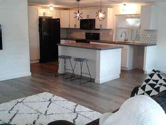 JUST REDUCED and MOVE IN READY! Renovated LARGE 2 bed 2 bath with walk in closets . Open floor plan with large Kitchen Island! Features include NEW Double Pane Windows, Roof 2008, New Carpet in Bedrooms, Newer A/C , New Hot Water Heater, 1 car detached garage or use as an awesome workshop with high ceiling and power. Carport and laundry area. Plenty of room for your toys, boats, RVs etc. HUGE back deck for entertaining and a small deck off the front . Back yard is fenced with room for a pool. Mature landscaping and tropical trees. NO HOA NO LOT RENT - YOU OWN THE LAND ! Furnishings included! Absolutely move in ready for under $90,000! BRING ALL CASH OFFER'S