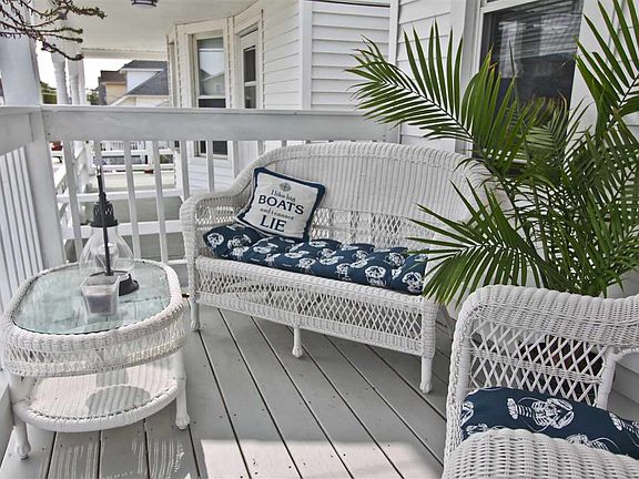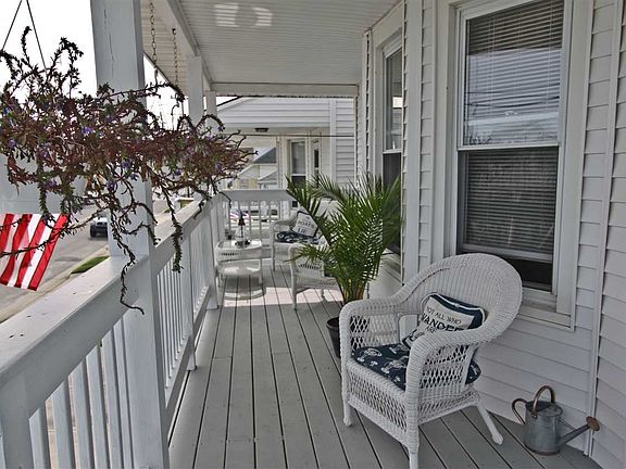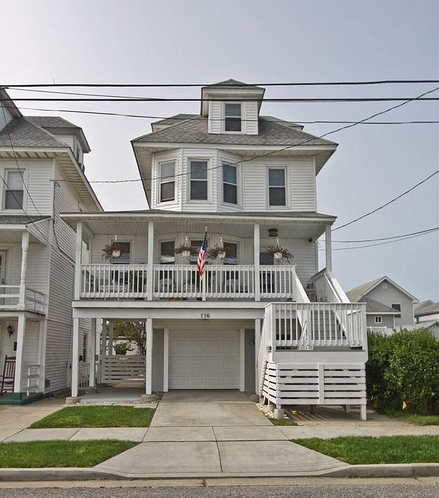 A home made of memories! Located 4 blocks to the beach and 2 blocks to shopping, this home blends the Victorian charm of the mid-20s with FEMA-approved updates. Boasting a new lifted foundation with a 1-car garage (and 2-car stacked parking in the driveway), the ground level of this home offers enough room for a vehicle and seasonal storage (perfect for beach carts and bikes). Through the garage is a utility room with on-demand hot water and more storage, along with a side entry to the outdoor shower and fenced yard. Beyond the mechanical room is yet another space flanked with loads of natural light from three big windows and door, and offers another point of access to the yard. Outside is a lush lawn and well-maintained garden with a flagstone patio positioned perfectly for those lazy afternoons after the beach and before the boardwalk. The front porch is a welcoming space that remains shaded most of the day. It leads into the 1st level of the home offering a living room with a cozy study and dining room with a cast iron gas heater (that is used to heat the whole house). Along with 9-ft ceilings, the original millwork on the banister are reminders of another era. The kitchen, full bathroom, and laundry make way to the sunniest spot of the house, the back deck. Perfect for grilling, sunbathing, or stargazing, this space has convenient access to the yard. The 2nd level features include another full bathroom and two bedrooms. The 3rd level is a finished attic bedroom with potential to be the loveliest room in the house. The unique lines of the sloped ceilings plus natural light from the skylight and windows on each wall give this space a warm ethereal feel. Make this unique property with ample parking your primary home or summer retreat. Call to schedule a showing today; owner occupied but easy to show.
