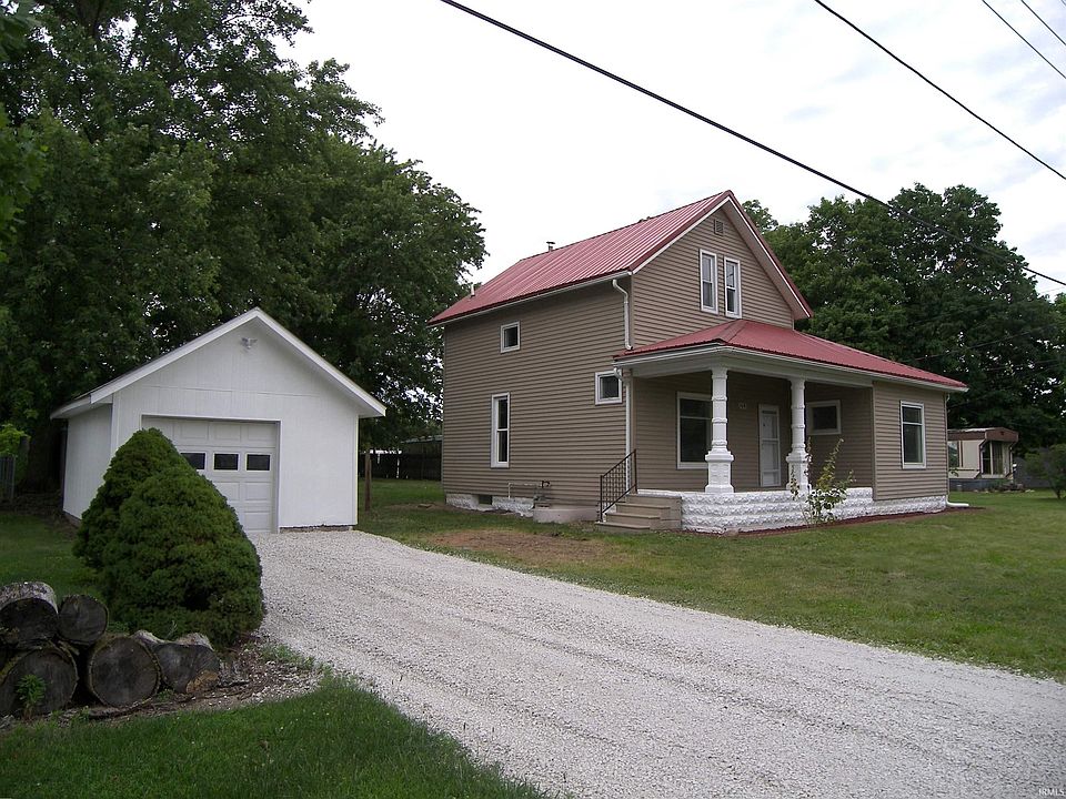 Immediate possession available with this remodeled 3 bedroom 1.5 bath vinyl sided home with basement and garage on a quarter acre lot in Burket. Main level features a decent sized living room with open staircase, formal dining room with natural lighting, kitchen, large bathroom with whirlpool tub/shower combo, laundry room, a bedroom, and a rear entry that leads to the 22x7 rear deck overlooking the deep rear yard. Upper level offers two large bedrooms and a new half bath. The basement has a finished rec room that could be a home office or additional bedroom (has an egress window and closet area), mechanical room and a storage room. Amenities include: modern metal roof, 8x19 covered front porch, GFA furnace, central AC, fresh interior paint, new floor coverings, water softener, 100 breaker box, NIPSCO gas & electric and low property taxes. Detached 14x20 garage is finished and has electricity and concrete floor. Ample off street parking. Affordable living in a small rural town only a short drive to Warsaw or Mentone.