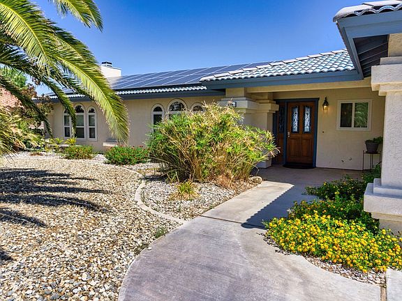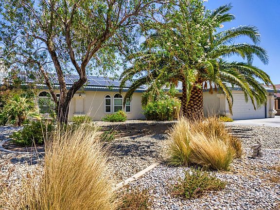 Exceptional 3 bedroom/2 bath home with pool in College Heights. Breath-taking panoramic VIEW of the valley from back yard on hillside terrace! Welcoming desert landscape & shading palm tree in front space. Enter via pleasant walkway & covered entry. Experience large kitchen w/ NEW granite countertop/backsplash & NEW appliances. Enjoy large family & living space areas - including fireplace. Take advantage of convenient indoor laundry room. Appreciate the ascetics & practicality of many features throughout house - ample bedroom spaces, NEWLY refinished guest bath (with dual vanity), UPGRADED dual vanity & NEW shower in Primary bath, wood laminate flooring throughout much of house. Newly painted interior throughout the home. Relax in backyard space w/ covered porch, refreshing swimming pool, desert landscape & privacy afforded by wrought iron gage & surrounding block wall. Pinch yourself each day as you experience the incomparable VIEW of the Indian Wells Valley from backyard. Manage expenses with PAID roof-mounted solar. Accommodate all electrical needs - with little or no monthly cost. Take advantage of RV Parking. PERFECT place to escape modern stresses!