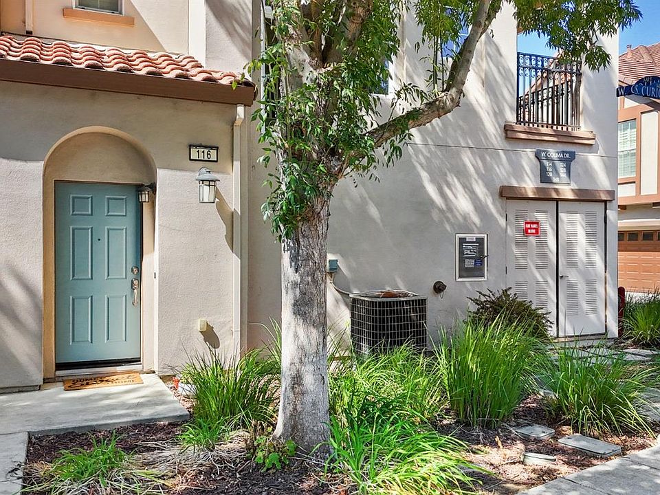 Beautiful & east-facing end unit condo, fresh 2-tone painted interior, newly white-painted cabinetry, laminate flooring throughout, kitchen features Corian counters, stainless appliances, gas stove, SS fridge stays, island with sink, breakfast bar & 2 pendant lights, dining area has slider to balcony, master includes walk-in closet, slider to 2nd balcony, 2 sinks, tub & stall shower, laundry room has electric dryer hookup, W&D stay & tile flooring and finished & painted 2-car garage with opener. Come take a look!