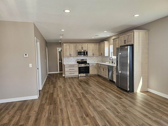 Welcome to your brand new 2 bedroom, 1 1/2 bathroom, 1215 sq ft home! Everything was gutted down to the studs and replaced including new sewer lines. This home is move in ready and waiting for you! The completely open floor plan, high ceilings, and lots of windows, give this home a spacious airy feeling. The master bedroom has its own ensuite bathroom, and the laundry/mudroom includes a half bath as well as a large closet and plenty of room to create a drop zone. Enjoy off street parking in a 1 car detached garage and then unwind on the large covered front porch. This home sits on 3 city lots and is located in a quiet neighborhood. Don’t miss out!! Call Sybil R Pyle today 620-408-5349