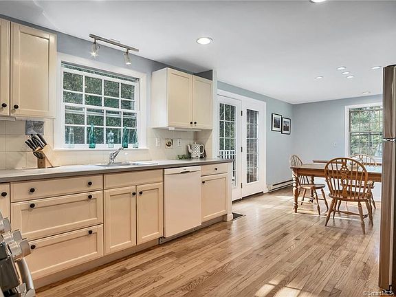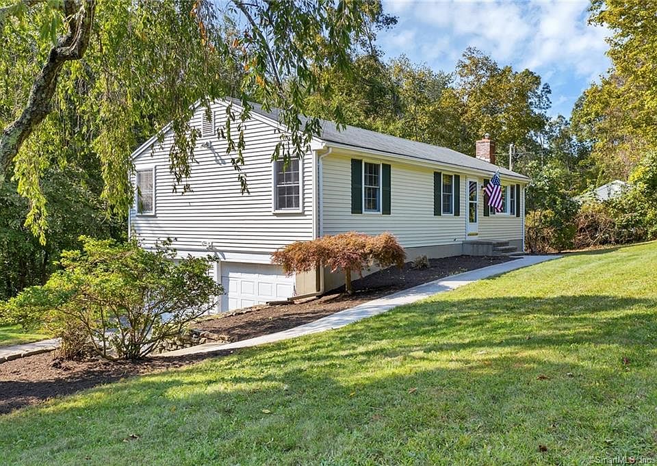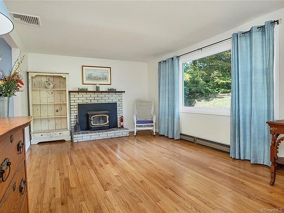 Spacious, well maintained Ranch with lower level family room and 2 car under garage. Hardwood floors throughout. The Living room has a fireplace with wood stove insert and a large picture window to let the natural light in. Renovated kitchen with new stainless gas range and LG refrigerator with smart technology, and a Bosch Dishwasher. French doors lead to a large rear deck with vinyl railings for additional entertaining space. The bath has a newer vanity and a linen closet. The 3 bedrooms have hardwood floors and closets. The home has newer vinyl windows with screens, a newer propane furnace (ready for AC hookup) and backup electric baseboard heat, a new 220 watt circuit breaker panel (2020) and the well has a newer water softener system installed. This is a great starter or downing sizing home. Close to I-95, Guilford center, beaches, shopping and dining.