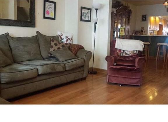 Move right in to this open concept living home. Beautiful Oak hardwood floors in living/dining area. Large counter bar open to living area that seats 5. Large kitchen with plenty of cabinet space. Master bedroom hosts a full wall closet. Finished space in the basement that could be used as a bedroom or a playroom. 3rd floor was used as a bedroom. Fenced in backyard with garage and off street parking. Walk to the neighborhood playground.