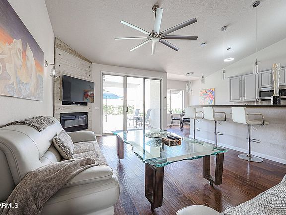 Don't miss this property. Near perfect 3 bedroom 2 bath home very tastefully decorated in a very desirable neighborhood. Split floorplan with vaulted ceilings wood flooring throughout, new carpet in one bedroom new baths with upgraded tile, dual sinks and a jacuzzi tub in the master bath,, walk in closet . Elect fireplace in master bedroom and great room with a open floor plan, Solid surface kitchen counter tops SS appliances, washer dryer, 9' outside walls and a resort style back yard with water saving landscaping,, travertine patio , waterfall in pool and a entertainers dream outdoor kitchen. Air cooled garage for comfort all year round. All this and no HOAThis home will not disappoint the fussiest buyer.