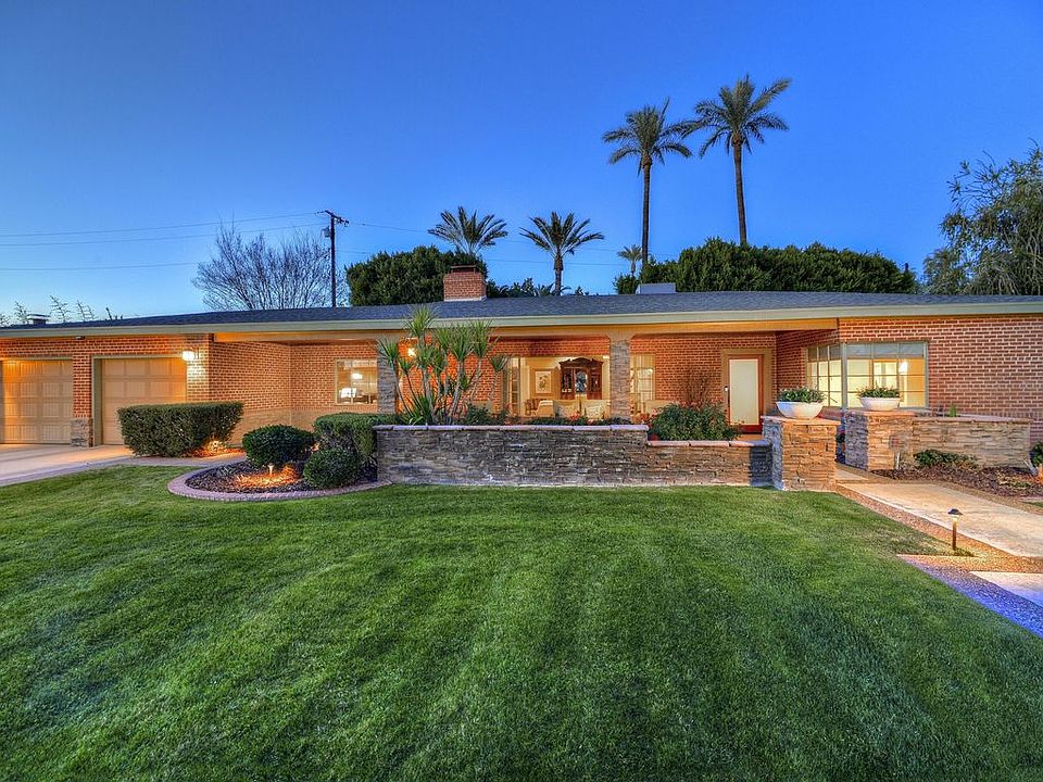 Elegance and sophistication define this lovely Central Phoenix custom home. Situated on an over sized lot, you will love the manicured landscaping and large flagstone front patio. Features include a spacious floor plan with three bedrooms, two-and-a-half baths, a formal living room appointed with crown molding and a cozy fireplace, formal dining and a wood paneled den/music room with its own fireplace. The kitchen is bright with a charming eat-in area, white cabinetry and granite counters with glass tile & mosaic backsplash. The comfortable master bedroom offers an updated master bathroom and walk-in closet. You will love entertaining in the spacious, private backyard with diving pool and mature landscaping.