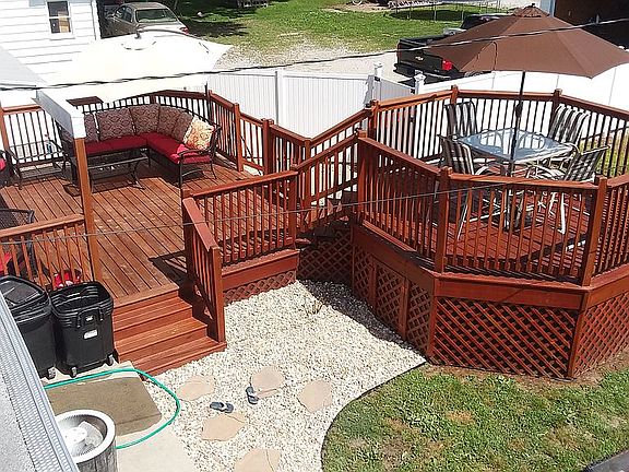 Turn key home and ready to move in! Spacious, private, fenced in back yard with new two tiered deck. Enjoy the evenings under the umbrellas with the lighted vinyl fence. Kitchen has newer cabinets, countertops, backsplash, flooring and appliances. Kitchen table, chairs and appliances all included. Living room features newer furniture with electric recliners, 55 inch TV, and cozy electric fireplace. Home has two full bathrooms and 3 nice size bedrooms. New paint throughout. Washer and dryer are also included. Property has a nice size 2 car garage with built in storage shelves. You won't need to bring much to move into this comfortable home! Call 618-604-8276 to set up an appointment