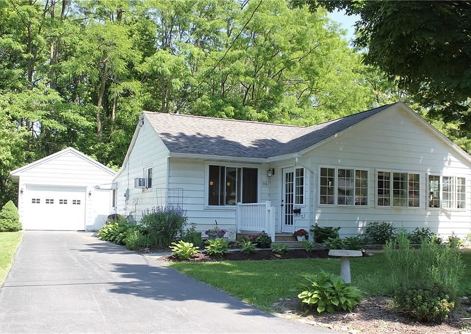 Conveniently located on a peaceful tree lined street in the Village of Fayetteville you'll find this special ranch. The inviting newly added 8' x 20', 3 season front porch welcomes you into comfortable living space. Features include, open floor plan, remodeled bathroom, updated kitchen with door leading to large pantry/mudroom to cozy flat yard perfect for evening dining al fresco, she shed and detached garage.