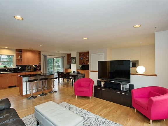 Adorable & bright 3 BR/2 BA split foyer loaded with surprises. Awesome open floor plan: hardwoods, recessed lights, updated kitchen with stainless appliances, granite counters, island w/seating & built in buffet. Full bath w/granite counter, tiled bath & floor, heated towel bar & updated lights. LL family area is perfect for cuddling in front of the fireplace, office space, work out room or playroom. Enjoy morning coffee on the deck taking in the gorgeous private yard. Must see this lovely, joyful home.