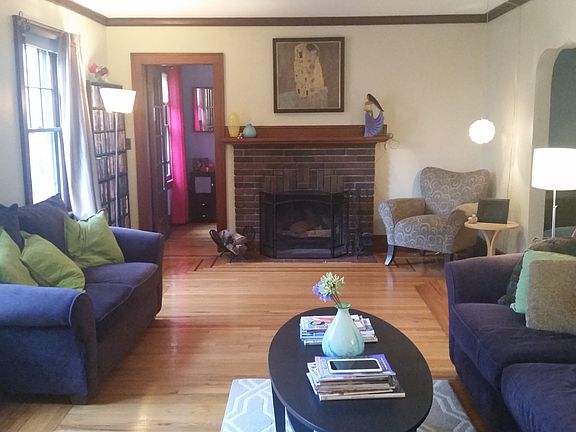 Big, Bright and Beautiful! Come see this charming home with loads of room for the family. Formal living room with Fireplace opens to Dining room with a french door to the porch overlooking the fenced yard. A perfect private office space is off the living room. Spacious eat-in kitchen with stainless steel appliances and pantry..great for storage. First floor laundry. Beautiful satiny hardwood floors throughout. Freshly painted.Tile in the bathrooms.Walk-up attic through the 1st bedroom. Two enclosed porches for additional living space. A real charmer! Newer: lighting fixtures, roof, boiler, 200 amp electrical panel.
