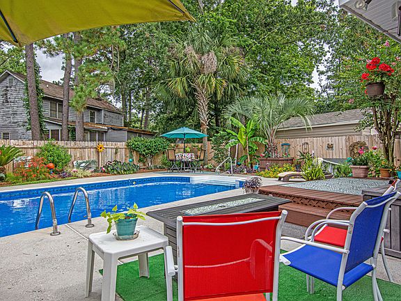 Welcome to your Tropical Oasis where your outdoor living is peaceful, private and tranquil. The sparkling swimming pool is gorgeous and inviting. This property has luscious landscaping that catches your eye and surrounds you with its tropical plants and palm trees. Inside the home is just as cozy and warm feeling. Starting with the family room that has wood textured walls that everyone is seeking, gas logs in fireplace and wood flooring. The formal dining room has wood flooring and opens to the kitchen and outdoor porch patio area. The kitchen has stainless steel appliances including a new dishwasher. The coffee bar has beautiful glass doors that showcase your dishes and has ample cabinets for storage. There is an over sized powder room on the main floor for guest.The laundry room is so large there is extra space for your items. Upstairs has three nice size bedrooms and two large bathrooms. Large Master Suite is unique with walk through closet into the nice size bathroom! This home is perfect for your large family and entertaining! Don't miss your opportunity! Come see this fabulous home.