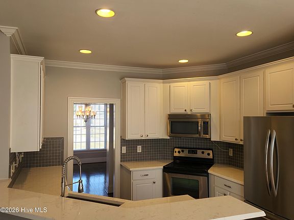 This well maintained beautiful home was built to custom standards with hardwood floors, oversized windows, exceptional trim details and high ceilings. The split bedroom floor plan is open to a large dining area with 3 large windows as you walk into the vaulted foyer and then into the souring ceilings of the living room. Beautiful hardwood floors cover these areas and the hallway leading to the open kitchen and guest rooms. The main bedroom is breathtaking with 2 large closets and double trey ceilings. Detains continue up the stairs to a large room over the garage for additional space. Located in a quiet subdivision with no through traffic, between downtown New Bern and Havelock, so no city taxes and not in a flood hazard area. Once Hwy 70 improvements are done it will be no time to New Bern or the nearby beaches.