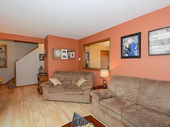 Everything you need is here! Attractive wood floors in the main level, built-in hutch in dining area and open concept kitchen and dining. Cut-out between dining and living room for added uniqueness. Main floor laundry and patio doors to deck and patio. Finished lower level adds so much more space to get away or entertain, plus features 1/2 bath. Heated floor in full bath. Nice sized bedrooms, walk-out lower level, Nest Thermostat, Radon Mitigation System, 3 car garage and more! Great access to Hwy 60, 67 and 33 making your commute easy.