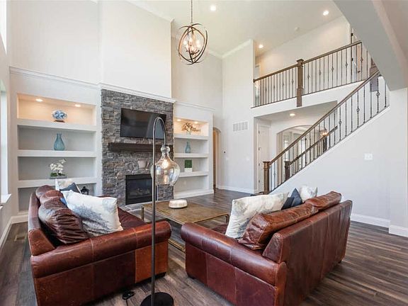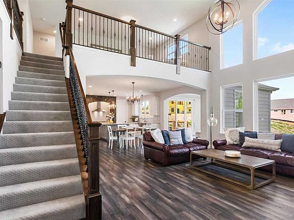 This stunning home took the Lombardo Rainier model with its spacious & open design, including a 2-story great room & overlooking loft, & enhanced it with a long list of custom features, including arched entryways, hickory hardwood floors, 4-season room w/10' sliding door opening to the deck, 2' extension in the main floor master bedroom & luxurious bath, California Closet master walk-in & 4' extension in the 3-car side-entry garage. Gourmet kitchen has quartz counters, custom soft-close cabinets w/roll-out trays, stainless steel appliances, including a 5-burner gas cooktop w/chimney hood, & a stacked stone arch surround that mirrors the stone fireplace. Huge walk-in pantry, butler's pantry & breakfast bar island. Finished lower level walk-out w/a home theater, wet bar & full bath. Nearly $40,000 in gorgeous professional landscaping & irrigation added. Dual, zoned, high-efficiency HVAC w/humidifier & so much more! Regal estate neighborhood. Wentzville (Liberty) Schools. See it today!