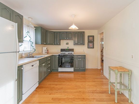 Make sure this one is on your holiday shopping list! Charming Cape with 4 bedrooms and 2 full baths. Attractive dining room/sun room with cathedral ceilings and wood stove overlooks level yard that has white vinyl fencing. Remodeled kitchen features plenty of cabinets, fully applianced and hard wood floors. The living room is brightened by triple windows and wood floors. The first floor also features 2 good sized bedrooms and full bath with neutral decor. On the 2nd floor are 2 over-sized bedrooms and a full bath with shower. Home is vinyl sided with replacement windows & there is also a shed for additional storage. Roof 12-14 years old APO, Newer Hot water heater 2019 APO. Don't miss out on this lovely home in a desirable location.