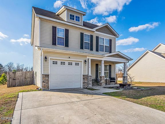 Welcome home to the NO HOA community of Wildflowers, nestled in Richlands, a short drive to Jacksonville, Camp Lejeune, and NCAS New River. Covered front porch leads you into the open living room featuring a gas fireplace and a dining area off to the side. The kitchen has cabinets with crown moulding, granite counters, stainless appliances (fridge included!), and a brand new microwave. Laundry and garage entry located right off the kitchen for easy access and laundry multi tasking, plus there's a powder room downstairs for guests. Upstairs, you'll find the three large bedrooms and two full bathrooms. Your owners suite has tray ceilings, a walk in closet, and a large master bath with a tub/shower combo and two sinks! The other two bedrooms share a jack-and-jill bathroom. A huge backyard and over 3/4 acre lot give lots of room to spread out, and the (mostly) fenced backyard would be great for pets and a game of catch! Seller is offering a 2-10 Home Buyers Warranty covering the major systems and appliances of the home for a year after purchase. Call a Realtor today about this home close to everything and far from expensive!