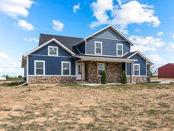 Welcome to this stunning NEW CONSTRUCTION HOME on 3 acres! There is so much to love about this home! This home offers so much curb appeal on the exterior with the back yard facing a farm pasture. As you walk in, you will see the stunning quality of work. You are going to love the engineered hardwood floors, the open concept living from the kitchen to the living room, the spacious eat in kitchen area, to the windows outlooking farm land. The kitchen offers a huge custom granite countertop island, a spacious walk in pantry with tons of storage, a built in microwave, and all solid wood custom cabinets. The living room has beautiful vaulted ceilings, with a floor to ceiling stone fireplace. The living room also provides plenty of windows bringing in that natural light. There is a door right off the eat in kitchen area that walk right out to another covered patio area. The floor plan has a split bedroom layout as the primary bedroom is on one side of the home and the other 3 bedrooms are on the other side of the home. The primary bedroom is very spacious as well providing vaulted ceilings and the primary en suite bathroom has dual his and her vanities, built in tub, a custom walk in shower and a walk in closet with tons of shelving. There is also a bonus area upstairs with a full living space/bedroom, a full bathroom and another full bedroom! You are able to walk right in to the attic space as well for more storage area. This home is one of a kind so schedule a showing before its gone!