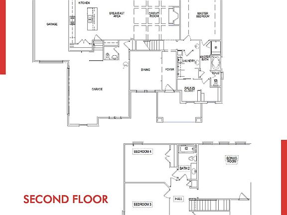 Phillips Builders | The Whitney Floor Plan - Primary suite on main level with dining/study versatility options. High end and trim detailed finishes throughout the home. Gourmet kitchen, quartz countertops, separate vanities in upstairs bedrooms... This home is not to be missed!
