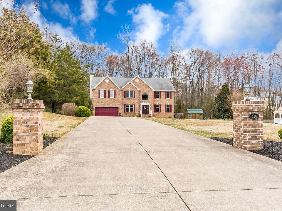 Gorgeous Brick front colonial nestled on 3 acres on a cul-de-sac in North Stafford. Beautiful park like setting with access to fully stocked neighborhood Pond, community park, lots of wildlife and a country atmosphere. Concrete driveway, landscaped lot, gazebo for afternoon and evening picnics, beautiful Magnolia trees and just the beauty of nature surrounding it! Plenty of space to enjoy the outdoors, light up a fire pit, and relax away from all of the noise. This home is very well built with a Gourmet Kitchen that includes Custom Built Cabinets, tile backsplash, bar area, Granite counter tops, stainless steel appliances, Double wall oven, and electric cooktop stove! Hardwood floors throughout entire main level, Oversized Family room with gas fireplace, columns, and an abundance of windows that let the natural light in! The family room will lead you out onto a full size deck overlooking a fully fenced in ground pool with a built in jacuzzi hot tub for lots of fun, relaxation, and entertaining! This beautiful home has a large study with built in book cases, spacious dining and living room with beautiful chandeliers, crown molding, chair railing, and tray ceilings! Open two story foyer with Palladian window! Make your way upstairs to the large Master bedroom with a huge walk in closet, Private Master bath with jetted soaker tub, separate shower, dual vanity with upgraded built in vanity storage! Bedroom two is a teenager's dream! It's large with an oversized sitting area, and a separate bathroom with dual vanity, soaker tub, separate shower and walk in closet! The other 2 bedrooms are very large in size, nice spacious oversize hallway with hardwood floors! New Fully Finished basement with projection screen and surround sound! Updated Full bath in basement with tile floor and shower! 5th bedroom in basement oversized but NTC. Has spacious closets for plenty of storage. From the basement you can walk right out to pool deck as well. Great locations with top schools in the county! Mountain View school district! Home has a generator and will convey an HMS Warranty!
