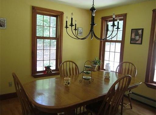 Nicely maintained 7 room, 3 bedroom Cape sitting on 1.71 acres close to town center. The first floor features a living room with a fireplace, dining room, bedroom, family room, full bath, and an eat in kitchen with access to back deck. The second floor includes master bedroom with a fireplace, ceiling fan, walk-in closet, and bath. The second floor also offers a full bath and another large bedroom w/access to storage area over 2-car garage. This home also has a very large finished basement. Exterior features include large front porch, a spacious rear deck, and over sized shed.