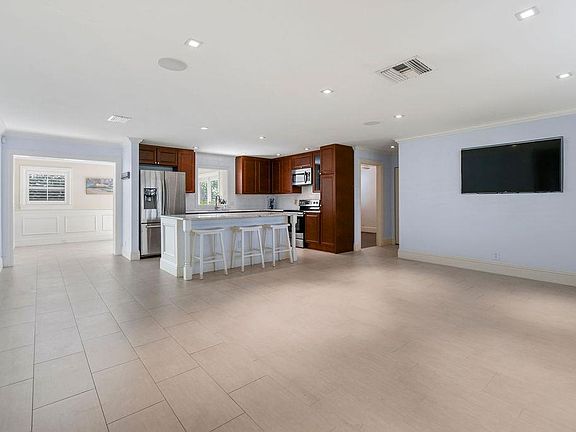 Beautifully remodeled 3/3 pool home on an over-sized corner lot with a 2 car garage. Remodeled by one of the top local builders; this home has luxurious finishes throughout. Impact windows and doors, spacious open kitchen custom quartzite stone counters, wine cooler, and a quality appliance package. Additional features include; porcelain floors, completely remodeled bathrooms with glass shower doors, rain shower head, plantation shutters, modern led lighting, built-in closets, surround sound, and the list goes on and on. Mature landscaping, lush tropical fully fenced backyard, room for boat or RV, an outstanding salt water pool, large sunshelf, and custom lighting. The ultimate Florida lifestyle, walk or ride your bike to restaurants, shops and the beaches.