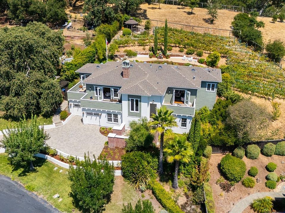 This elegant residence offers Wine Country living right here in Marin. Situated on approximately one half-acre, the property is adjacent to open space and has views for miles - from the Bay to Mt Tam. The current owners have curated a small vineyard of Pinot and Merlot that provides enjoyment, ambiance, and a yield of up to 200 bottles annually. Management can be handled by an owner or can continue being maintained and bottled by a local winery under the family's brand. Inside, the home is grand in scale, yet warm and comfortable, with an ideal indoor-outdoor flow for entertaining. With a large, professional-grade kitchen, huge island, and open flow to the breakfast area, family room, and living room, there is space for everyone. The formal dining room has double French doors that open onto an expansive veranda, adjacent to the vineyard that is terraced and artistically lighted for optimal ambiance. The setting is picturesque and inviting year-round. In addition to 3 south-facing balconies, a stone-paver patio runs the length of the back of the home. A custom, redwood gazebo is perched at the top of the property overlooking the vineyard - the perfect spot to enjoy the ever-changing views. Minutes from downtown Novato cafes, restaurants, and easy access to 37 and 101. Welcome!