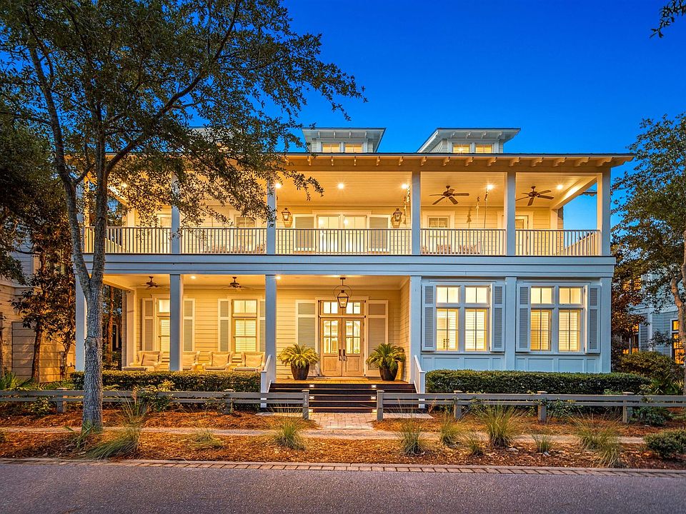 This beautifully furnished Masterpiece in Watercolor exudes timeless elegance at every turn. The expansive estate is over 5,500 square feet with 6 bedrooms, 6.5 bathrooms, a 6 bed bunk room, 2 car garage, additional golf cart parking plus 3 additional parking spots. Other notable features include an elevator that services all floors and a spectacular outdoor oasis complete with swimming pool, spa, fireplace and summer kitchen. Upon entering the foyer, notice the meticulously crafted details throughout including the grand staircase and stunning arched white Chicago brick foyer with antique oak beams. Marvel at the spacious open living space with a white brick fireplace, antique whitewashed wood ceiling, custom millwork, and ample natural light.