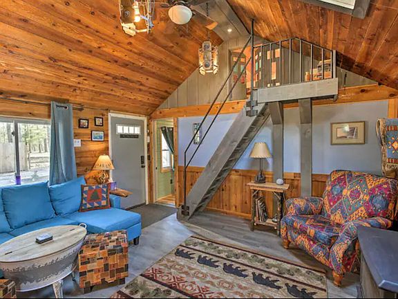 This completely renovated vibrant cabin is ready for your Up North adventures! Unlock the front gate and you are instantly taken aback by the charm. Being sold fully furnished, the open living room has vaulted ceilings and exposed beams with a stone wall and natural gas stove. Leading you to the dining room and a galley kitchen that is embellished with modern appliances. Featuring two bedrooms and a sleeping loft for additional guests. A full bathroom completes the interior. The private exterior space is just as beautiful welcoming you with mature landscaping and entertaining areas. There is an outdoor kitchen shed and even an outdoor shower to use after a day at the nearby sandy beaches of Higgins Lake. The cabin has also been used as a vacation rental and has verified income potential.