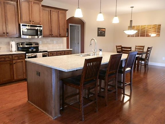 • KITCHEN DESC: Pantry, Smooth Ceiling, Granite Countertop, Wood Floor, Kitchen Island, 9? Ceiling, Recessed Lighting